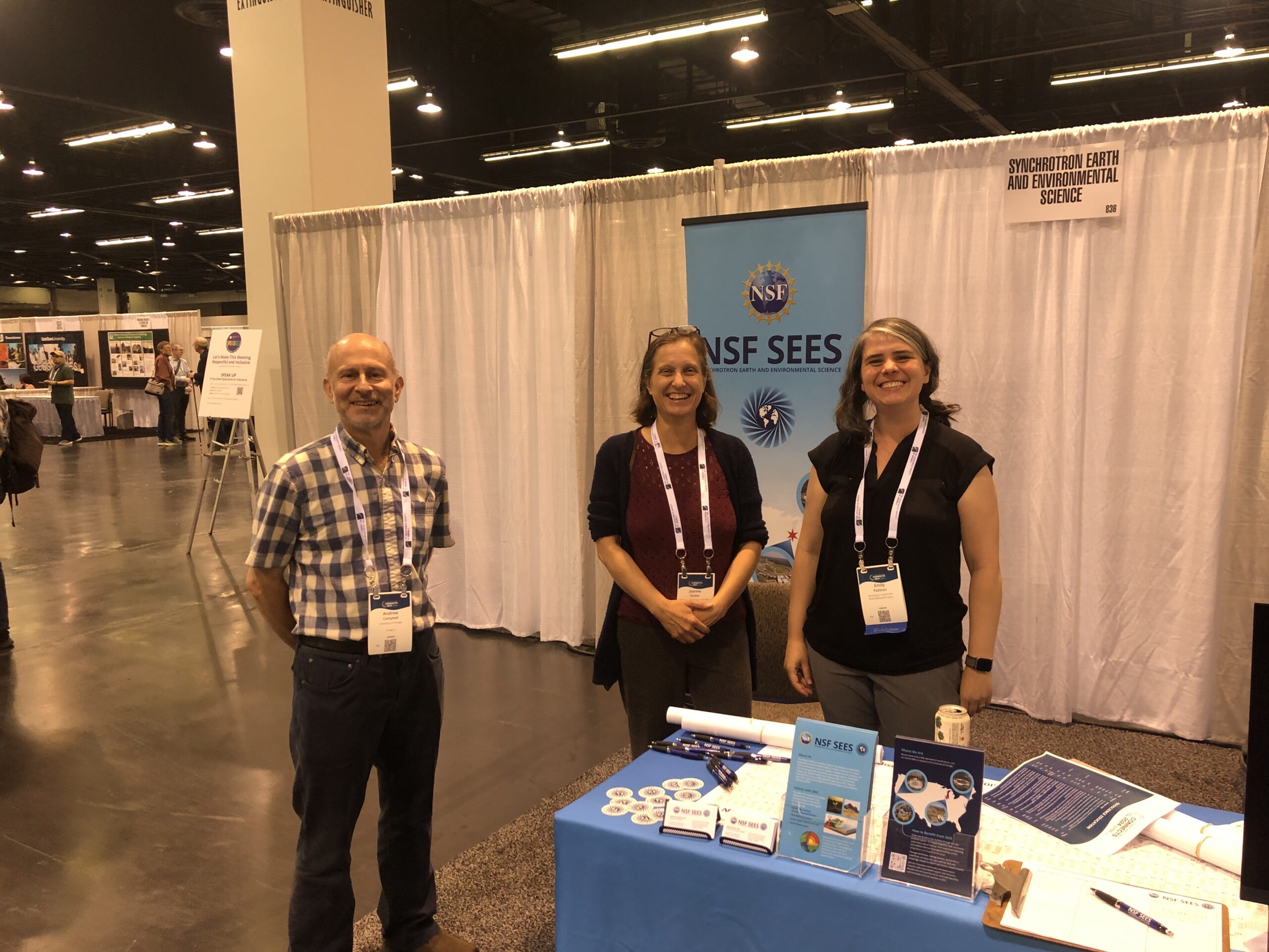SEES had an exhibition booth at the GSA conference in Anaheim this year. Joanne Stubbs (Beamline Scientist and Facility Director at APS) stopped by to say hello to Andy Campbell and Emily Padston from the Central Office. Joanne also co-chaired a session with Athena Chen (ORNL) and Cara Santelli (UMN)