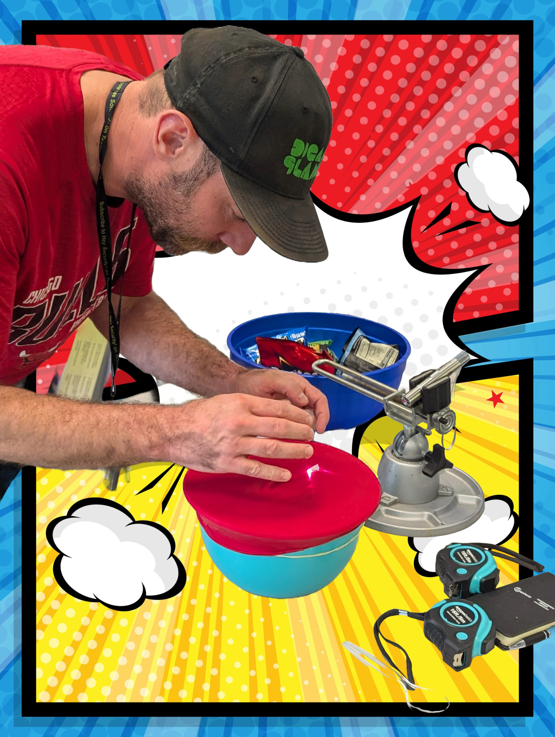 GSE scientists Tim Officer and Stella Chariton get ready for the South Side Science Festival, Oct 5th